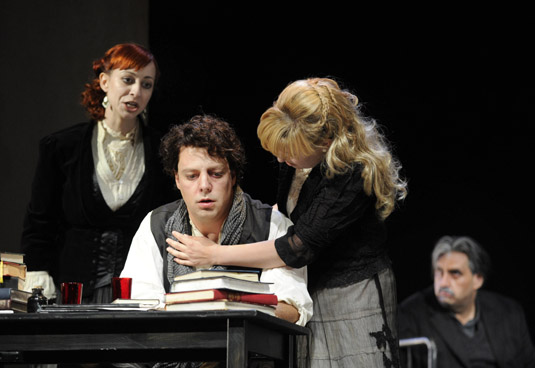 Nelligan jeune (Dominique Côté), Eva (Pascale Beaudin) et Gertrude (Valérie Bélanger